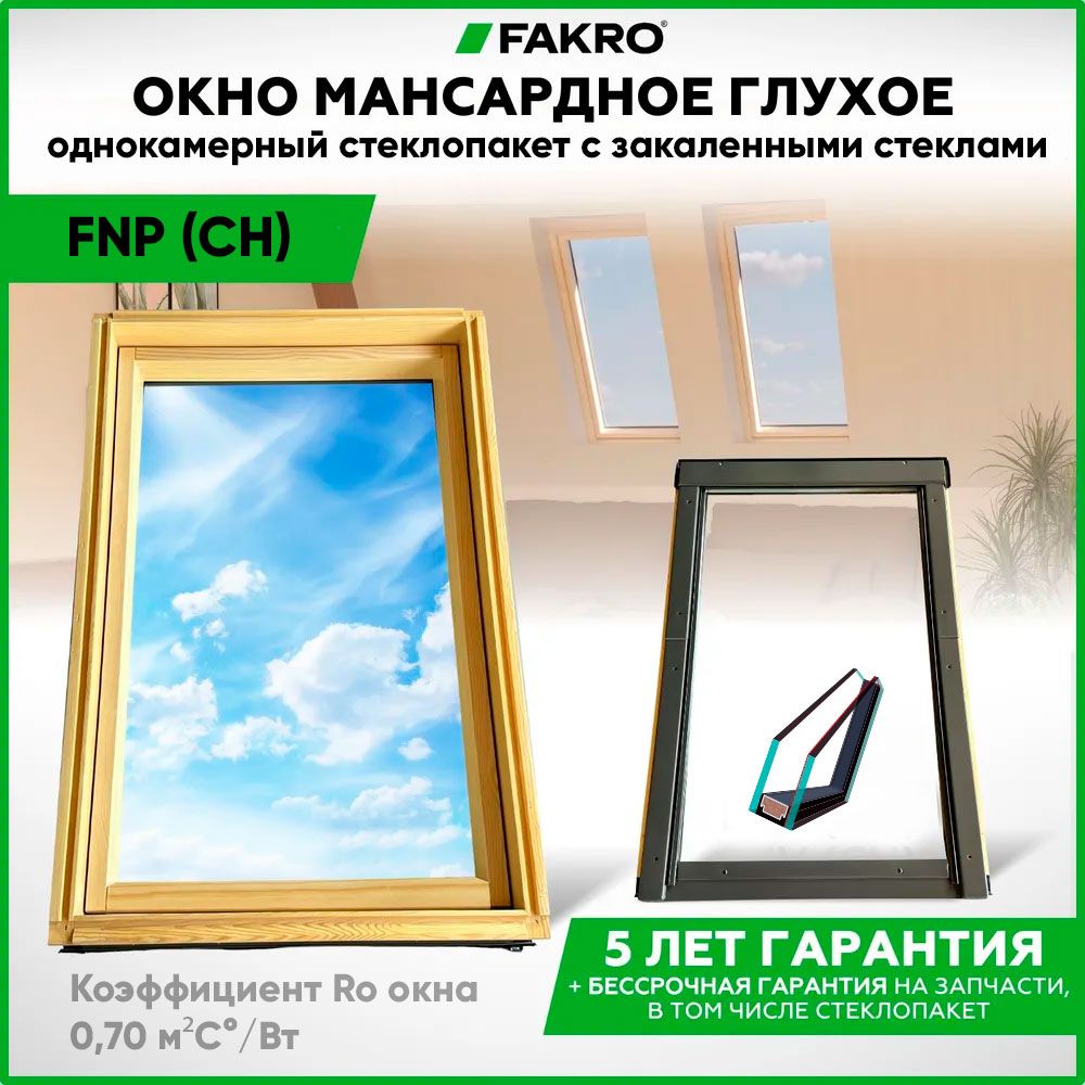 Мансардное окно Fakro FNP (CH) глухое 55x98 (однокамерное)