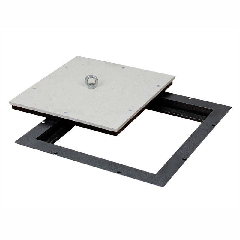 Монтаж накладной: Люк монтируется накладным способом, что значительно упрощает процесс установки. Он устанавливается в проем и фиксируется дюбелями. Предназначен для проема в полу 400-600 мм.