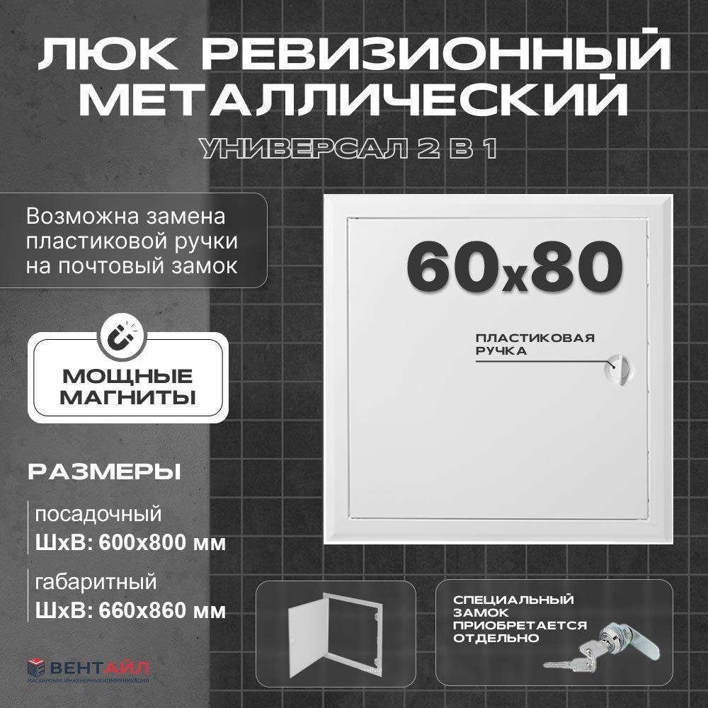 Люк металлический ревизионный с магнитом и пластиковой ручкой 60x80, модель "Универсал" 2 в 1