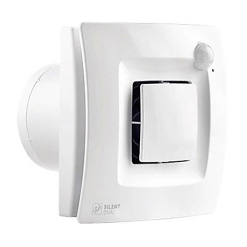 Датчик движения(с широким углом обнаружения) и влажности! Silent Dual анализирует параметры воздуха и сам выбирает алгоритм работы, без вашего вмешательства. Если нет движения и нет повышенной влажности он работает в зависимости от выбранного режима работы(периодического или постоянного). При плавном увеличении влажности он включается на 43% и увеличивает мощность до 100%. При резком увеличении влажности включается на 100% и выключается при ее уменьшении. При обнаружении движения и текущей(средней) влажности он включится на 75% мощности и проработает от 2 до 15 минут.