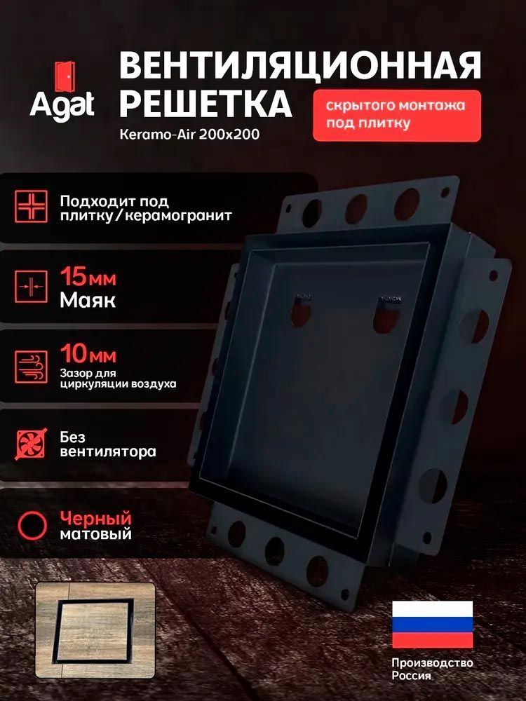 Вентиляционная решетка скрытого монтажа Agat Keramo Air 200x200 под керамическую плитку